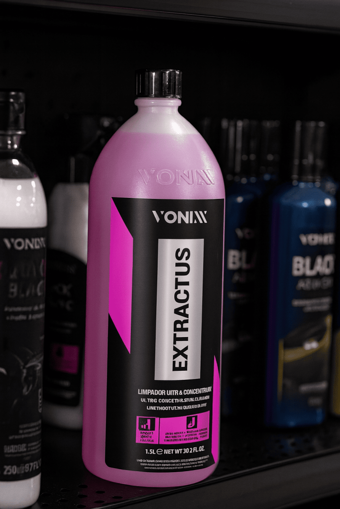 Extractus Vonixx é eficiente na limpeza profunda de estofados automotivos, removendo manchas difíceis com alta performance e rendimento.